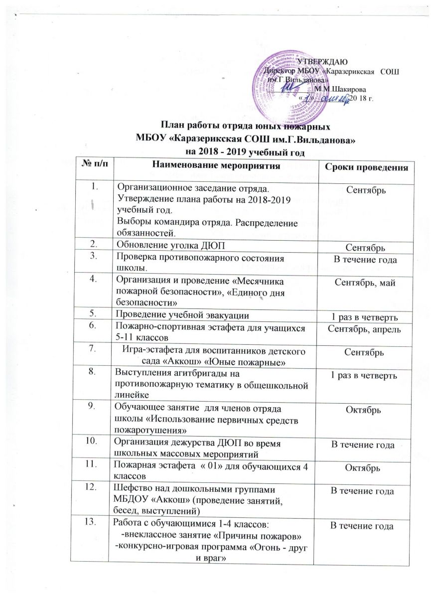 План работы за 2018-2019 учебный год