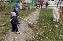 Бүген көзнең бик матур көнендә балалар өлкәннәр белән бергә көзге өмәдә катнаштылар. Мәйданчыктагы яфракларны җыйдылар, беседканы себерделәр, тәртипкә керттеләр.