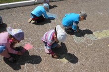 Ребята нашего детского сада тоже любят рисовать. И вот 2 июня на серой поверхности появились яркие следы, а волшебные мелки становились все меньше и меньше. Асфальт детского сада расцветал чудесными удивительными рисунками! И вскоре весь двор напоминал художественную галерею