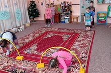 Занятие по физкультуре. Ползание на четвереньках.