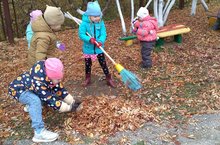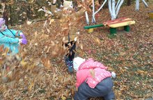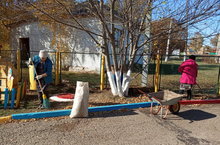 Мәйданчыкны коелган яфраклардан чистарту./ Очистка площадки от опавших листьев.