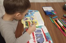 Айваз "Транспорт" темасын кабатлап, пазлы җыя./Айваз собирает пазлы, повторяя тему "Транспорт".