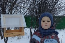 Газизуллин Искандер со своим дедушкой сделали кормушку для птиц и с папой повесили на дерево.