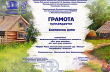 Наша воспитанница Борисенко Алия участвовала в международном конкурсе "Вот моя деревня, вот мой край родной" и стала победителем.