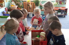 В гости к детям пришел Мишутка. Он принес собой игрушки и подарил их детям.