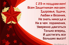Поздравляем всех мужчин, защитников Родины с праздником 23 февраля. Это дань нашего уважения всем поколениям российских воинов, от древних времён до сегодняшнего дня, мужественно защищавших родную землю от захватчиков. В этот самый “мужской” день представители мужского пола, от мальчишек до пожилых мужчин, принимают поздравления и подарки, а военнослужащие заслуживают самых искренних поздравлений – ведь у них очень важная и почётная профессия – защищать Родину.