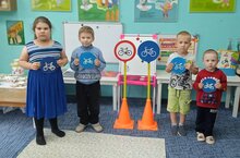 В этот день мы с детьми узнали откуда к нам пришёл велосипед. Рассматривали иллюстрации велосипедов прошлого, их виды. Повторили правила для велосипедистов. Сделали разрешающий знак из пластилина и картона.