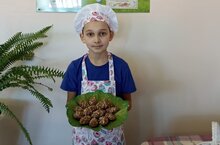 На уроке технологии ученик 4 класса Зарипов Радель занимался кондитерским производством. Приготовил пирожное " Картошка" и угостил своих друзей.