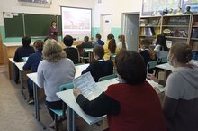 Для учащихся старших классов был проведен урок, посвященный Великой Отечественной войне. Учитель истории, Юсупова Зульфия Варисовна, познакомила учащихся с краткой историей ВОВ. Ребята узнали исторические факты о значительных боях и с интересом слушали истории о произошедших событиях. В ходе урока учащиеся задавали вопросы учителю для более детального познания об истории ВОВ. В конце урока был продемонстирован видеоролик о некоторых боях ВОВ.