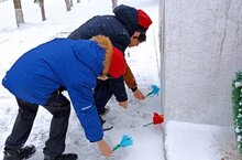 В День неизвестного солдата Юнармейцы очистили от снега территорию павших в ВОВ и возложили цветы к памятнику.