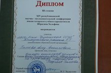 И.Хальфин исемендәге фәнни-эзләнү конференциясендә катнашып 3 дәрәҗә диплом белән бүләкләнгән татар теле һәм әдәбияты укытучысы Галиева Алсу Фәнис кызын котлыйбыз! Тагын да югарырак уңышларга ирешүен телибез.