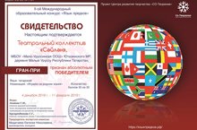 Театральный коллектив "Сэйлэн" признан абсолютным победителем во II Международном образовательном конкурсе "Язык предков". Поздравляем!