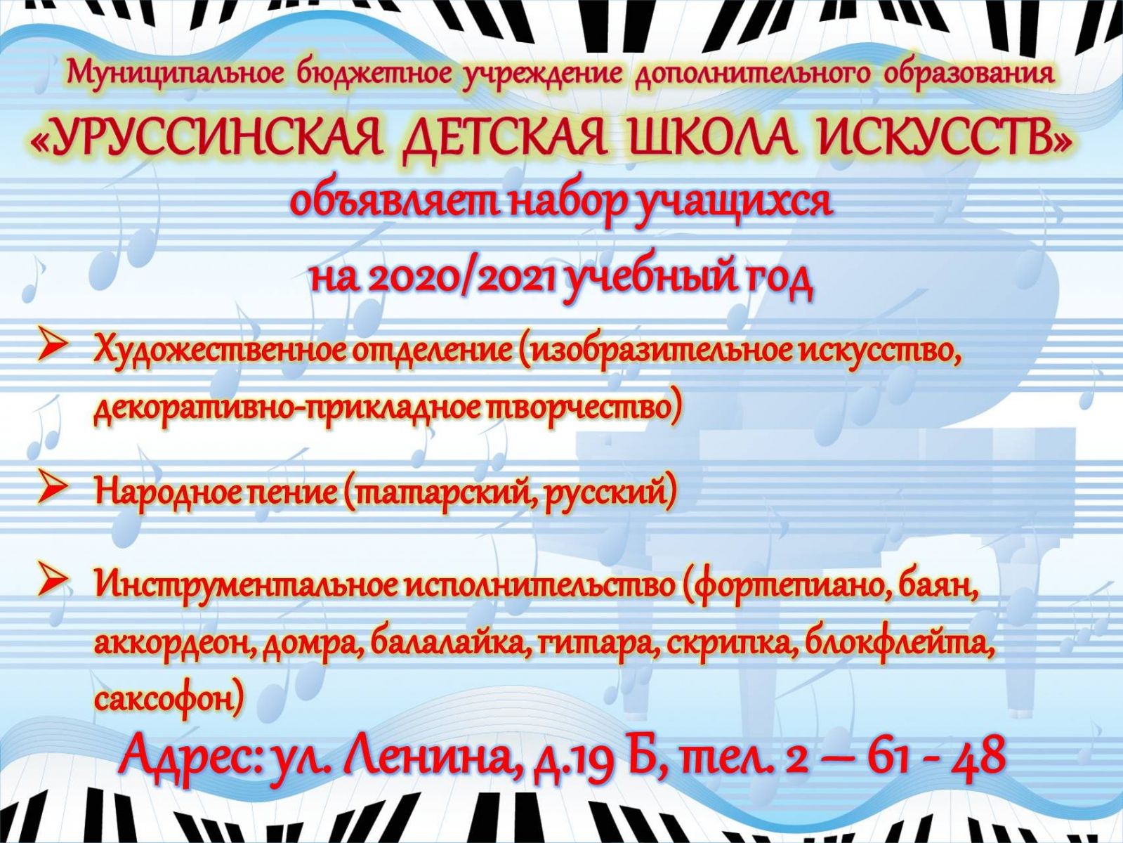 Муниципальное бюджетное учреждение дополнительного образования "Уруссинская детская школа искусств" Ютазинского муниципального района Республики Татарстан - новости