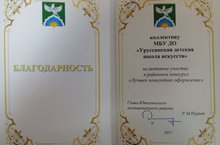 Коллективу МБУ ДО "Уруссинская детская школа искусств" объявлена благодарность за активное участие в районном конкурсе "Лучшее новогоднее оформление" 03.01.2018