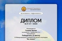 Поздравляем учащегося Уруссинской ДШИ Галеева Артёма с победой в IX Международном конкурсе для детей и молодёжи "Мы можем!", ставшего Победителем 2 место (преп.Мударисова С.Н.).