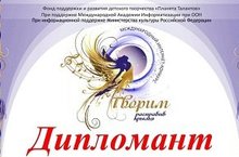 Поздравляем дипломантов престижного конкурса "Творим, расправив крылья!", который организовывает Фонд поддержки и развития детского творчества "Планета Талантов", при поддержке Международной Академии Информатизации при ООН, при информационной поддержке Министерства культуры Российской Федерации.