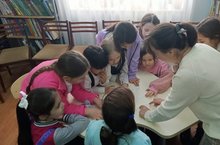 На занятиях дополнительного общеразвивающего объединения Школьный театр на английском языке "Актёрское мастерство" ребята младшей возрастной группы читали стихи, скороговорки, разгадывали загадки, пели и слушали песенки на английском языке. Репетировали сказку "Репку".