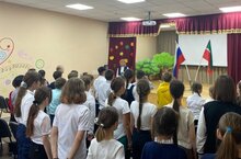 Утро понедельника в #УруссинскаяНОШ1 началось с линейки, посвященной поднятию флага РФ и РТ, и исполнения гимна.