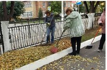 Коллектив школы принял участие на субботнике и очистил от листвы территорию школы.