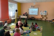 Утро началось с необычной разминки под музыку, где ребята выполняли разные движения, повторяя за примером на экране.