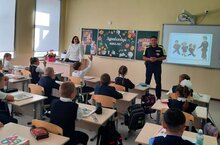В рамках недели безопасности в 1 классах прошли беседы по предупреждению детского дорожно-транспортного травматизма, с участием инспектора ГИБДД Жанназарова А.М.