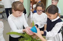 Участники акции набирали воду из чаши в сложенные лодочкой ладони и поливали растения из рук...