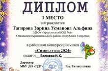 Поздравляем девочек 4 Б класса Тагирову Зарину, Усманову Альфину, Хасанову Элину, Галиеву Розалию, Абдульманову Элину, Шакирову Лилию, с призовым местами в районном конкурсе рисунков "Символ года 2024" (педагог Волкова Н.С.)