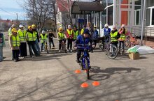????Не обошлось и без практической части! Учащиеся с удовольствием проходили препятствия на велосипедах, показывая свои навыки управления двухколесным транспортом.