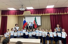 По традиции каждый понедельник в школе проходит торжественная линейка с поднятием флага Российской Федерации и Республики Татарстан и исполнением гимна. После данной церемонии было поздравление участников и победителей олимпиады.