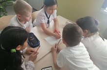 В рамках декады татарского языка в 1Б классе прошла интерактивная игра "Знатоки Татарстана" . Мероприятие строилось на основе игры "Своя игра", аналогичной телевизионной. Дети активно включились в игру, обсуждали вопросы и давали , в основном правильные ответы. В течение всего занятия для активизации познавательной деятельности использовалась форма групповой работы;