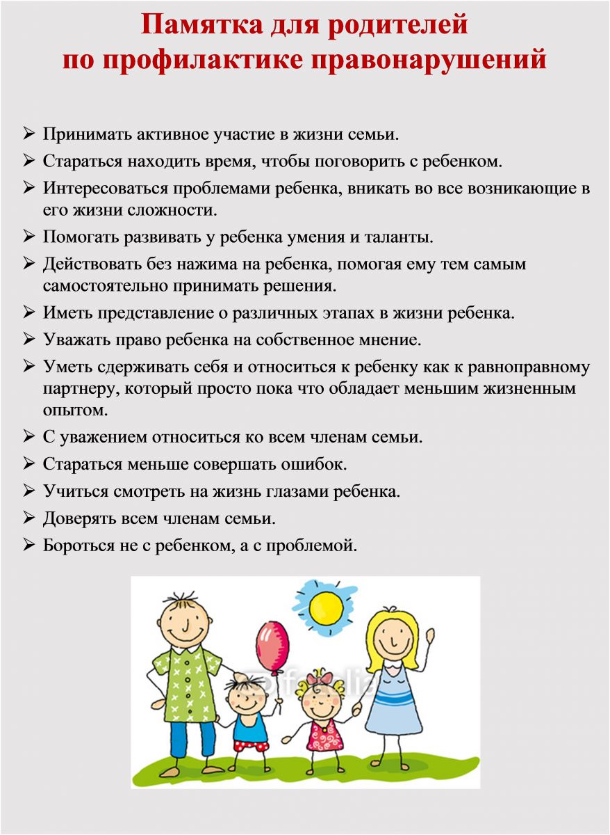 Памятка родителям по профилактике правонарушений ребёнка