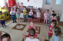 "Җәнлекләр ничек чаба" музыкаль-ритмик уены: балаларда тавыш кабул итү сәләтен үстерә һәм тональ музыка буенча нинди җәнлекләр сурәтләнгән: аю, төлке яки тычкан. -