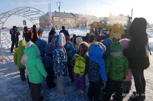 Старались красиво построиться около садика, показывая всем, что мы готовы к экскурсии.