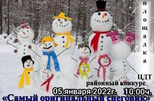 Сегодня пятого января в Центре детского творчества несмотря на сильный мороз был проведён районный конкурс "Самый оригинальный снеговик " . Дети с удовольствием приняли активное участие и были поощерены подарками. 14.03.2022
