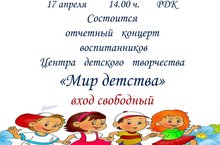 17 апреля состоится отчетный концерт воспитанников Центра детского творчества 10.04.2017