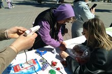 На площади РДК, педагоги "Центра детского творчества", провели мастер-класс по изготовлению "Георгиевской броши", посвящённый 78-летию Дня Победы. 10.05.2023