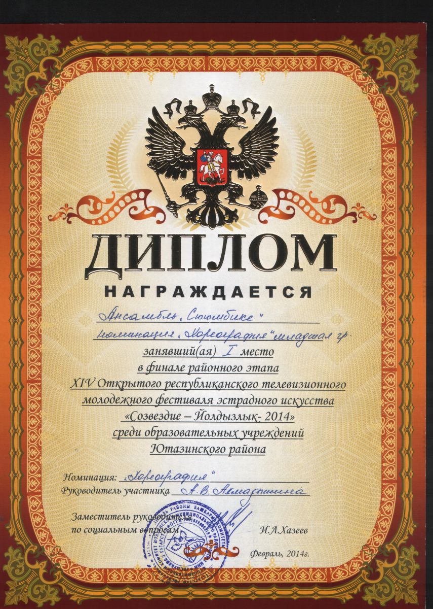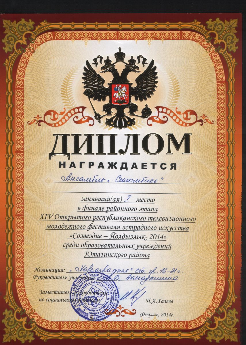 Республиканский конкурс_ Созвездие - Йолдызлык_ Диплом_ Сююмбике