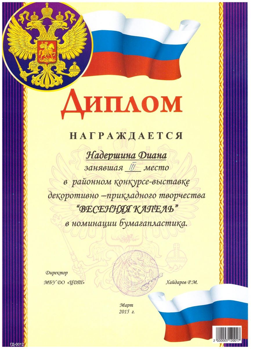 /Диплом 3 степени в районном конкурсе - выставке "Весенняя капель". (Надершина Диана).jpg