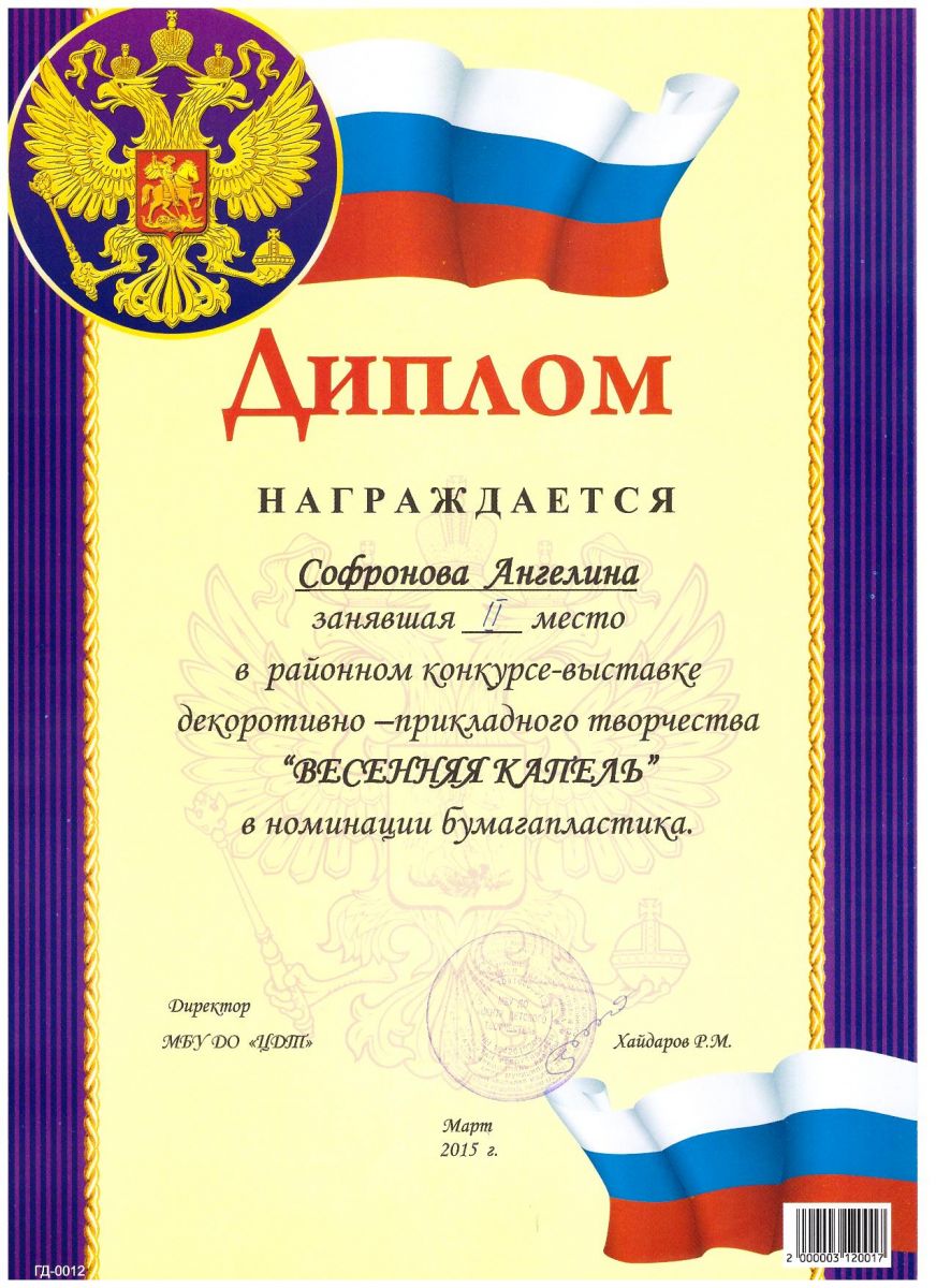 /Диплом 2 степени в районном конкурсе - выставке "Весенняя капель". (Софронова Ангелина).jpg