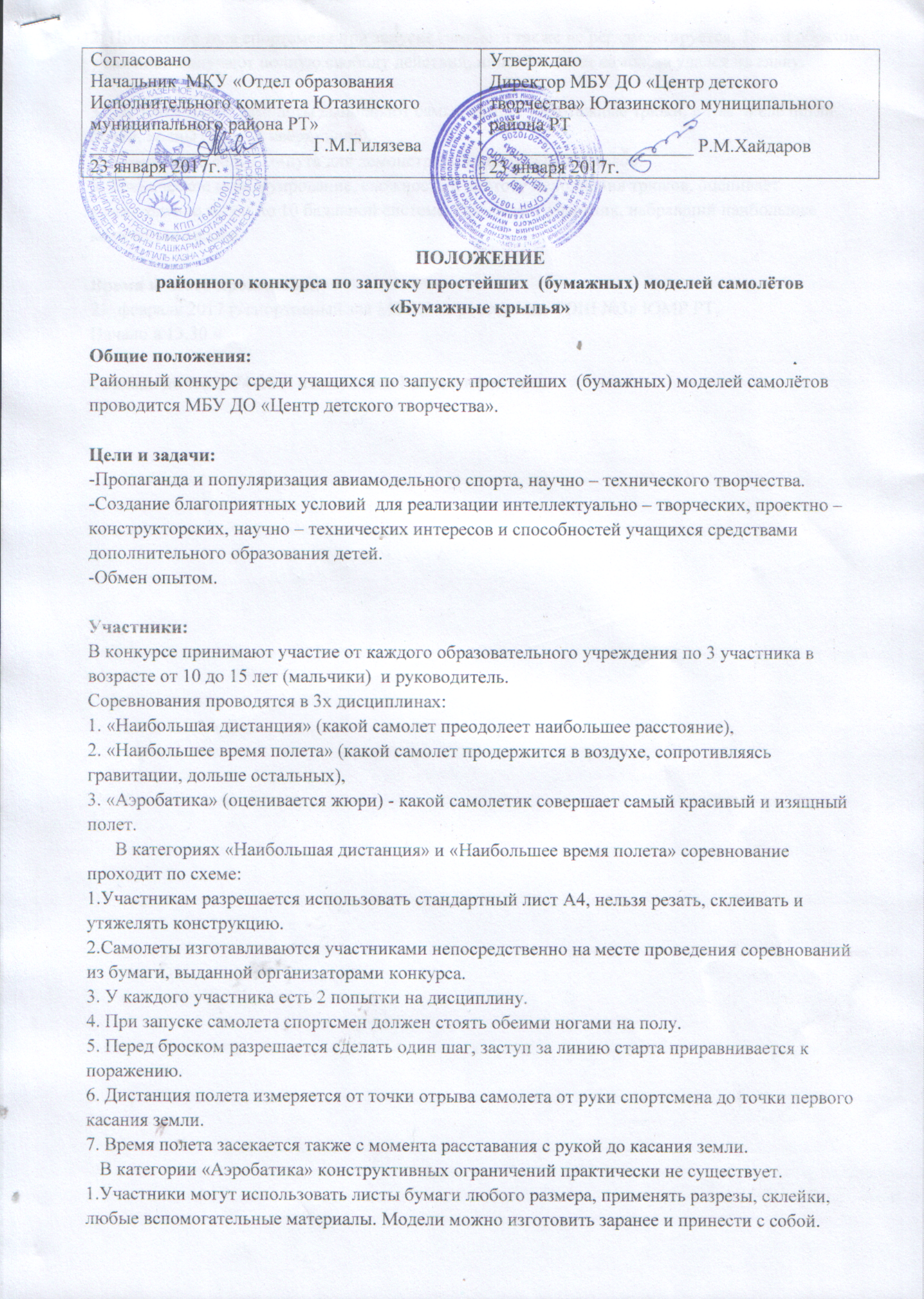 Положение районного конкурса простейших моделей самолетов "Бумажные крылья"