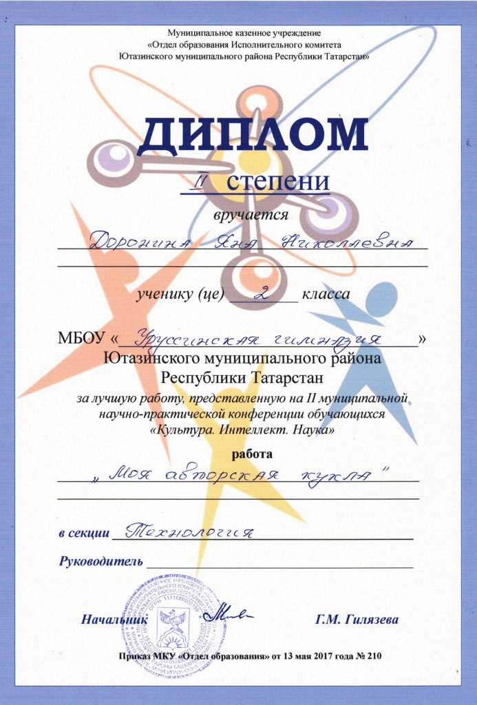 /Диплом 2 степени за лучшую работу, предоставленную на муниципальной научно - практической конференции обучающ9ихся "Культура. Ителлект.Наука".Доронина Яна.jpg