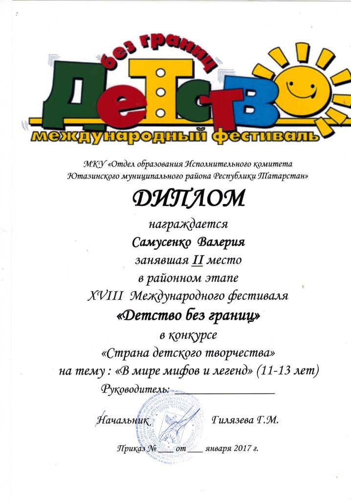 /Диплом 2 степени на муниципальном этапе Международного фестиваля "Детство без границ". Самусенко Валерия.jpg