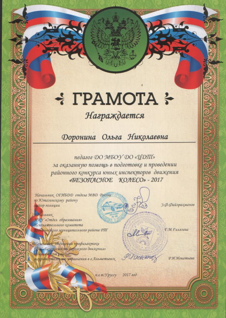 /Грамота за оказанную помощь в подготовке и проведении районного конкурса юных инспекторов движения "Безопасное колесо".jpg