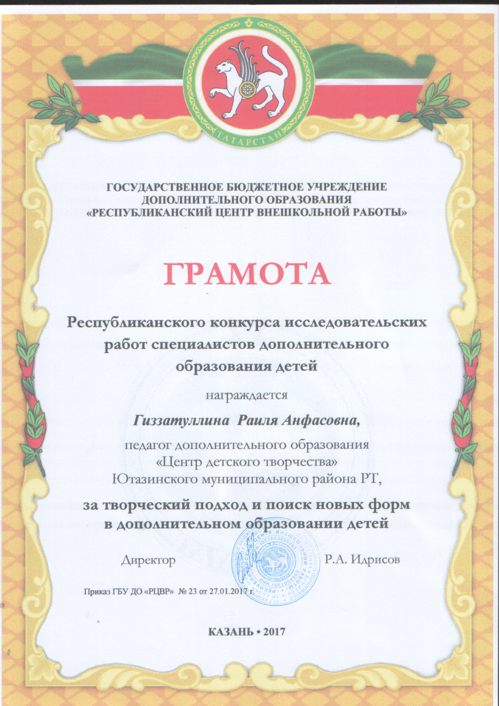 | Руководитель: | Гиззатуллина Раиля Анфасовна |