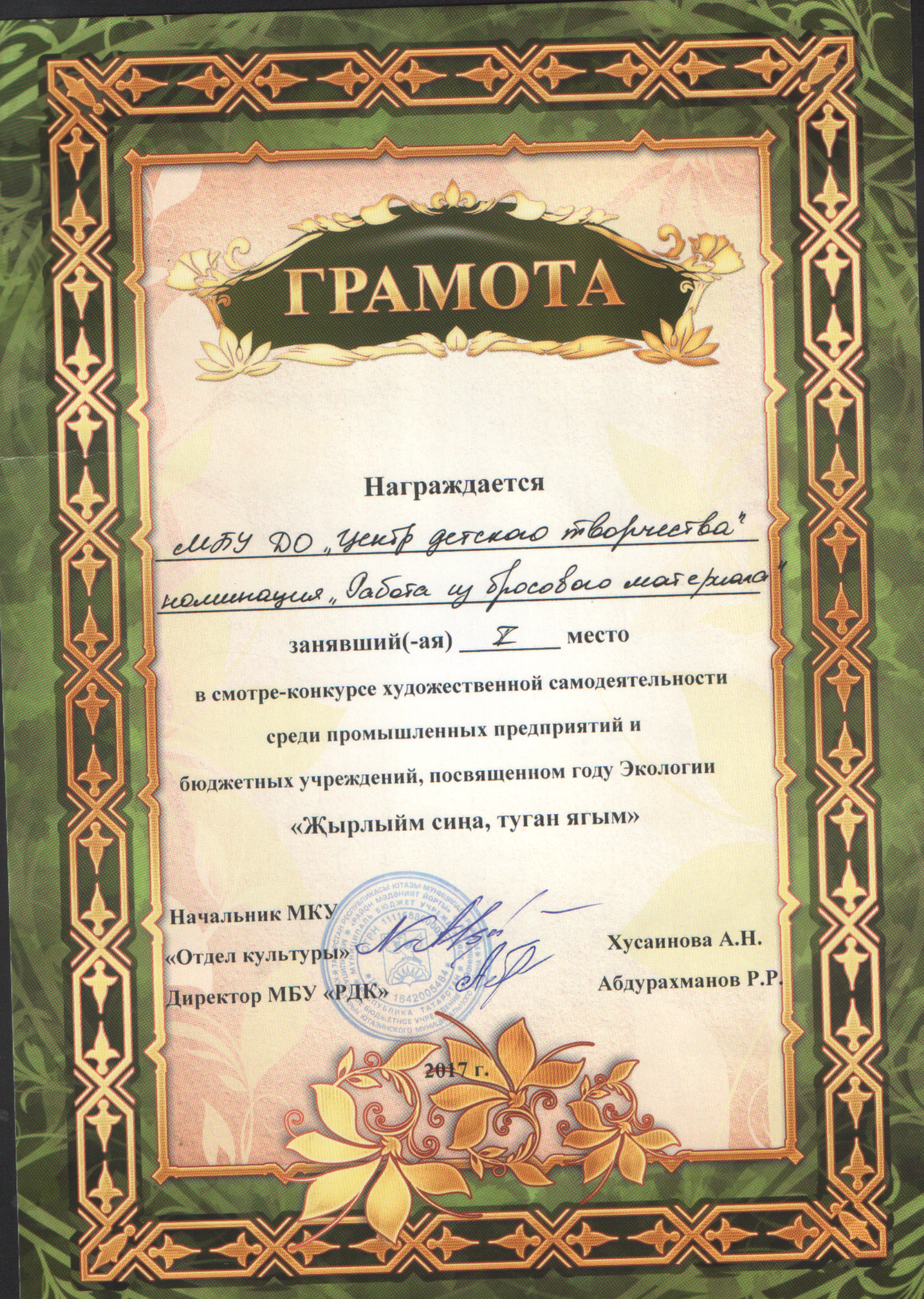 Муниципальное бюджетное учреждение дополнительного образования «Центр детского творчества» Ютазинского муниципального района Республики Татарстан/Татарстан Республикасы Ютазы муниципаль районы «Балалар иҗаты үзәге» өстәмә белем муниципаль бюджет учреждениесе