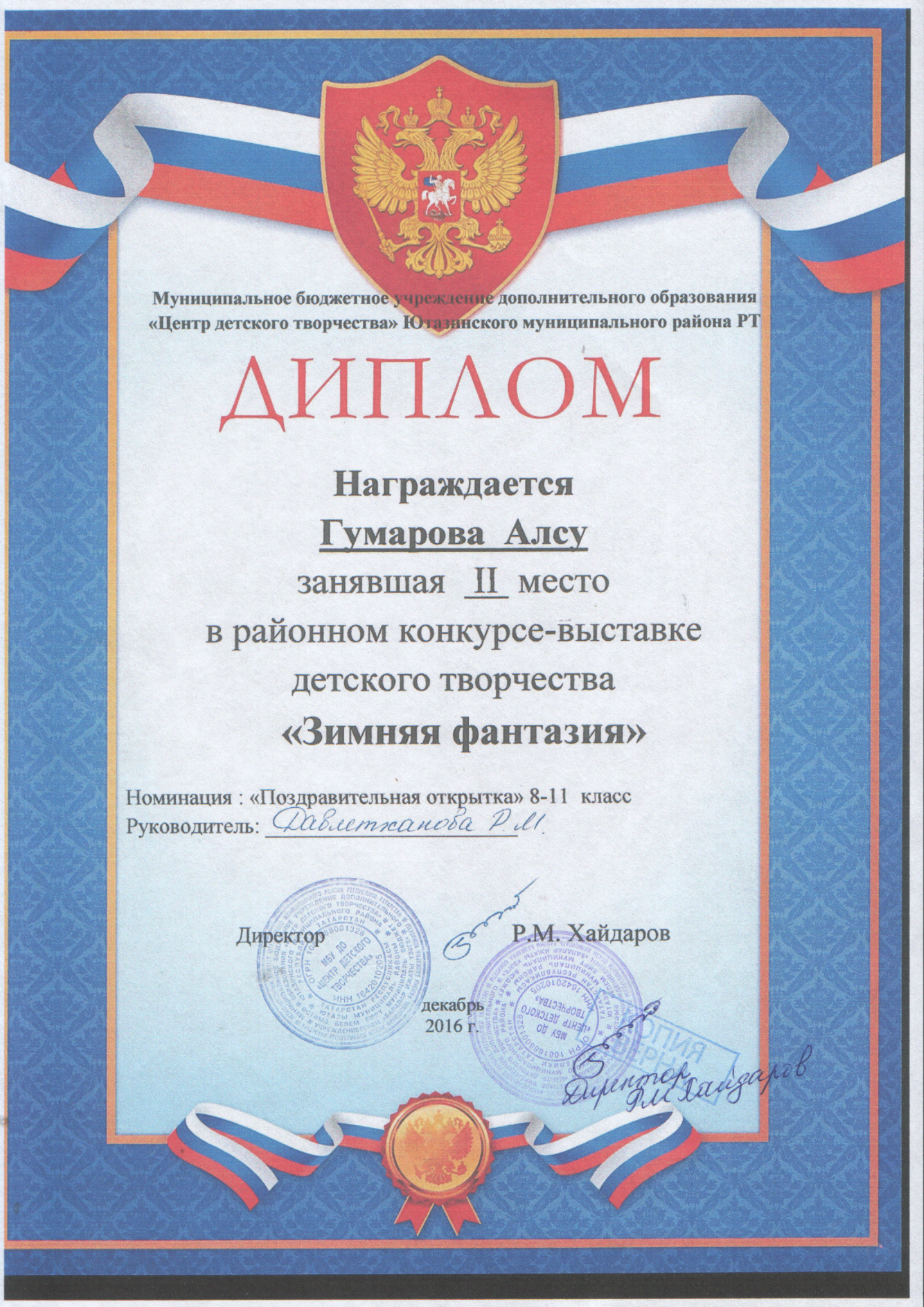 Муниципальное бюджетное учреждение дополнительного образования «Центр детского творчества» Ютазинского муниципального района Республики Татарстан/Татарстан Республикасы Ютазы муниципаль районы «Балалар иҗаты үзәге» өстәмә белем муниципаль бюджет учреждениесе