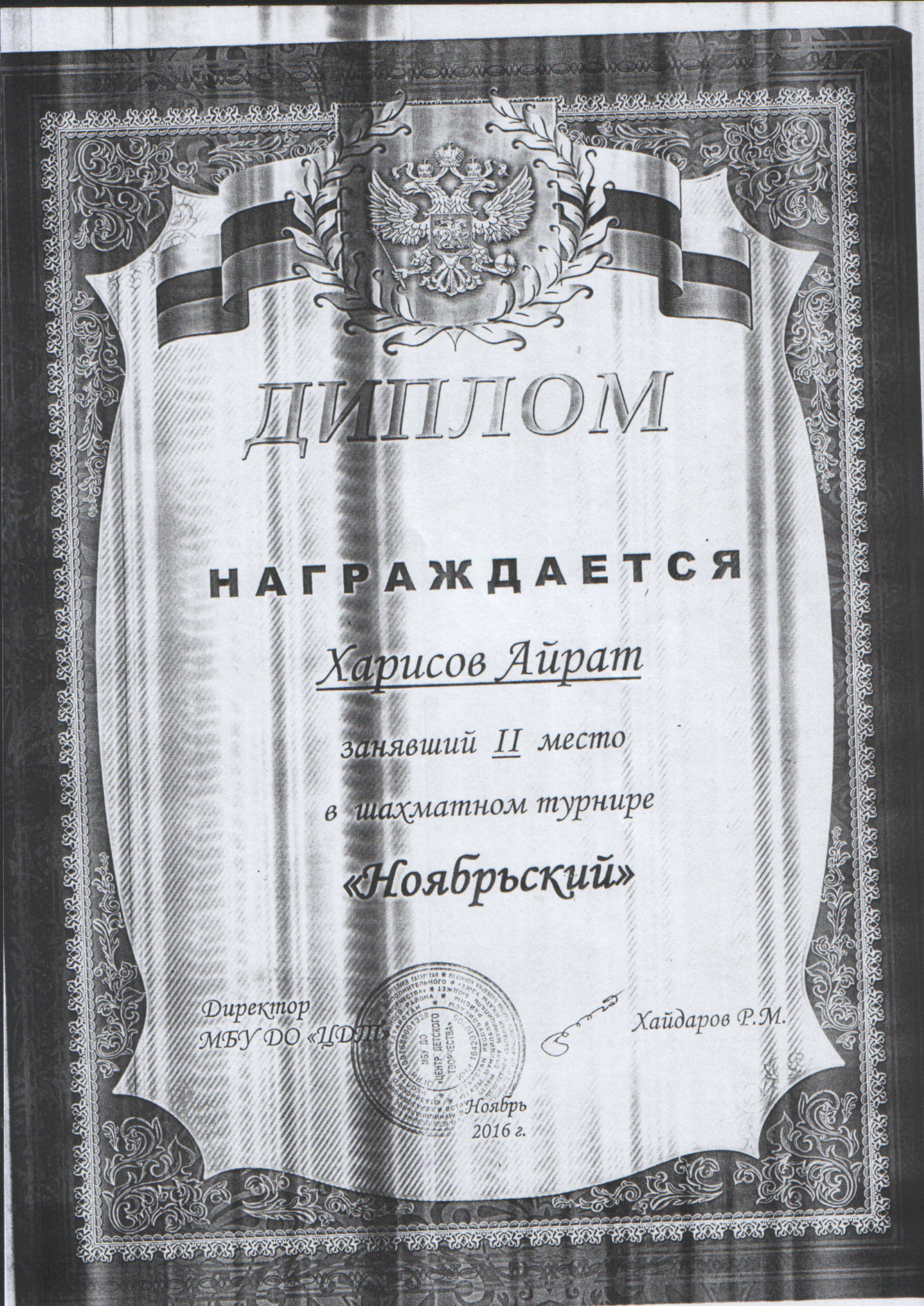 /Диплом 2 степени в шахматном турнире "Ноябрьский". Харисов Айрат.bmp