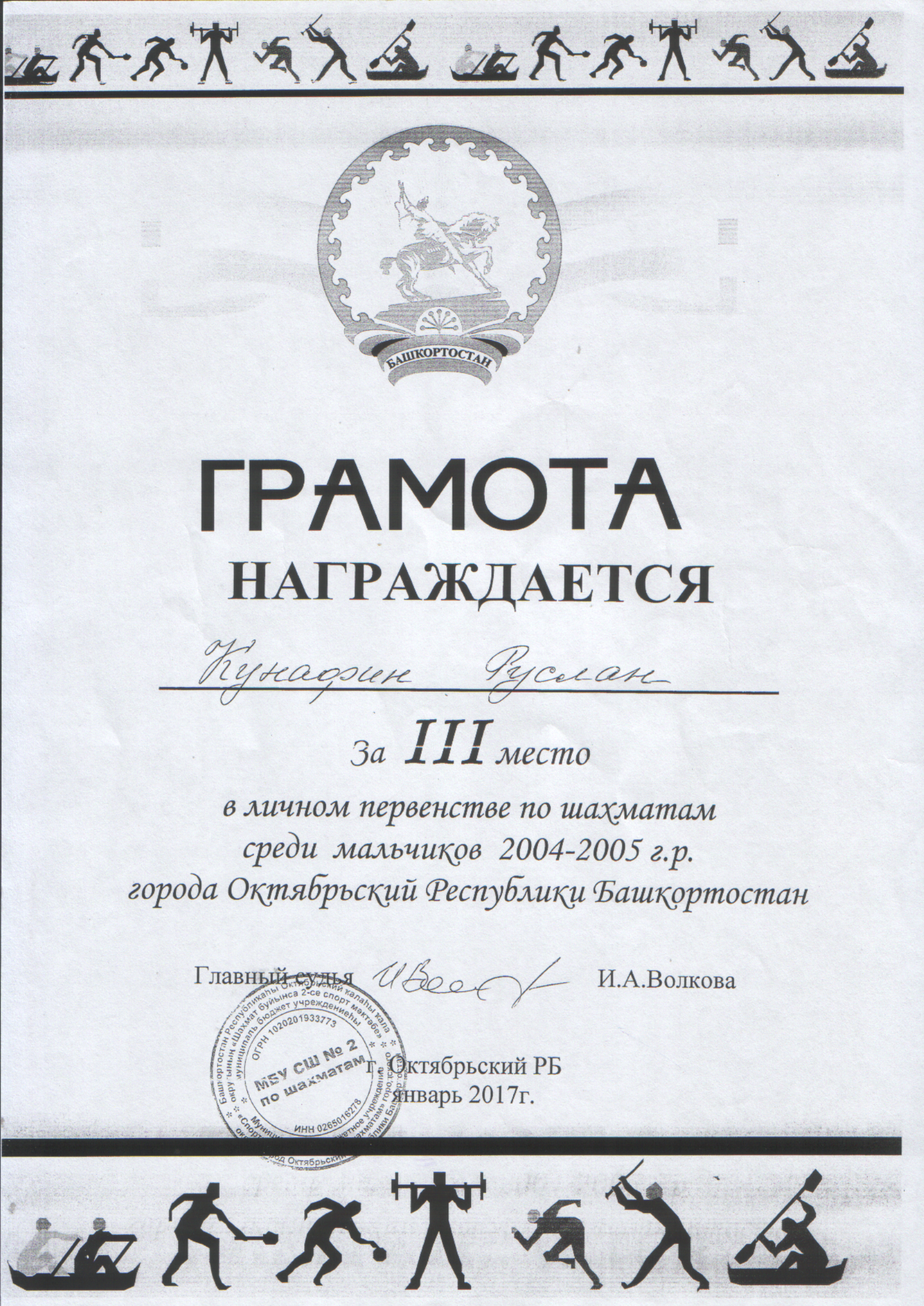 /Грамота 3 степени в личном первенстве по шахматам города г. Октябрьский РБ. Кунафин Руслан.bmp