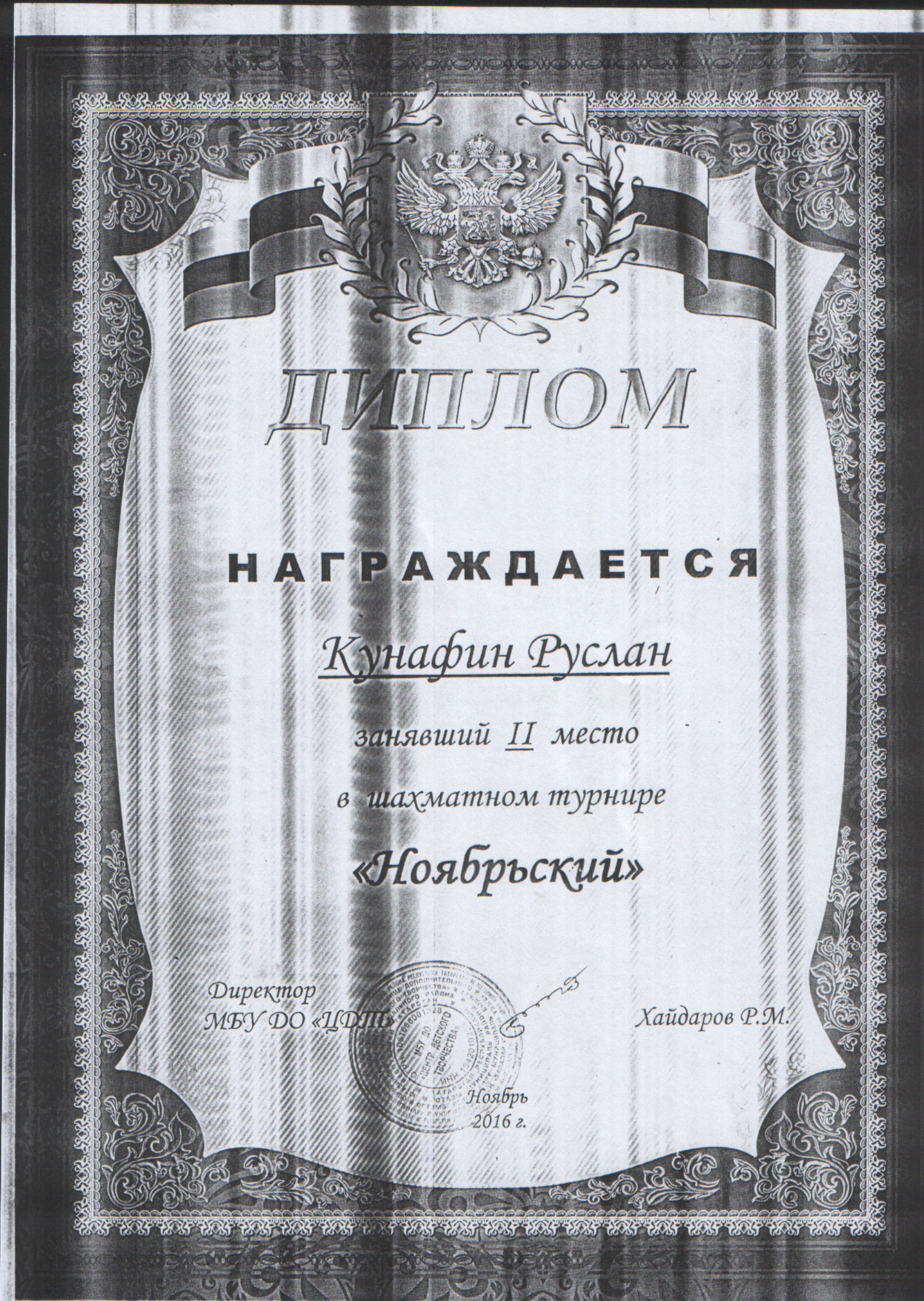 /Диплом 2 степени в шахматном турнире. Кунафин Руслан.bmp