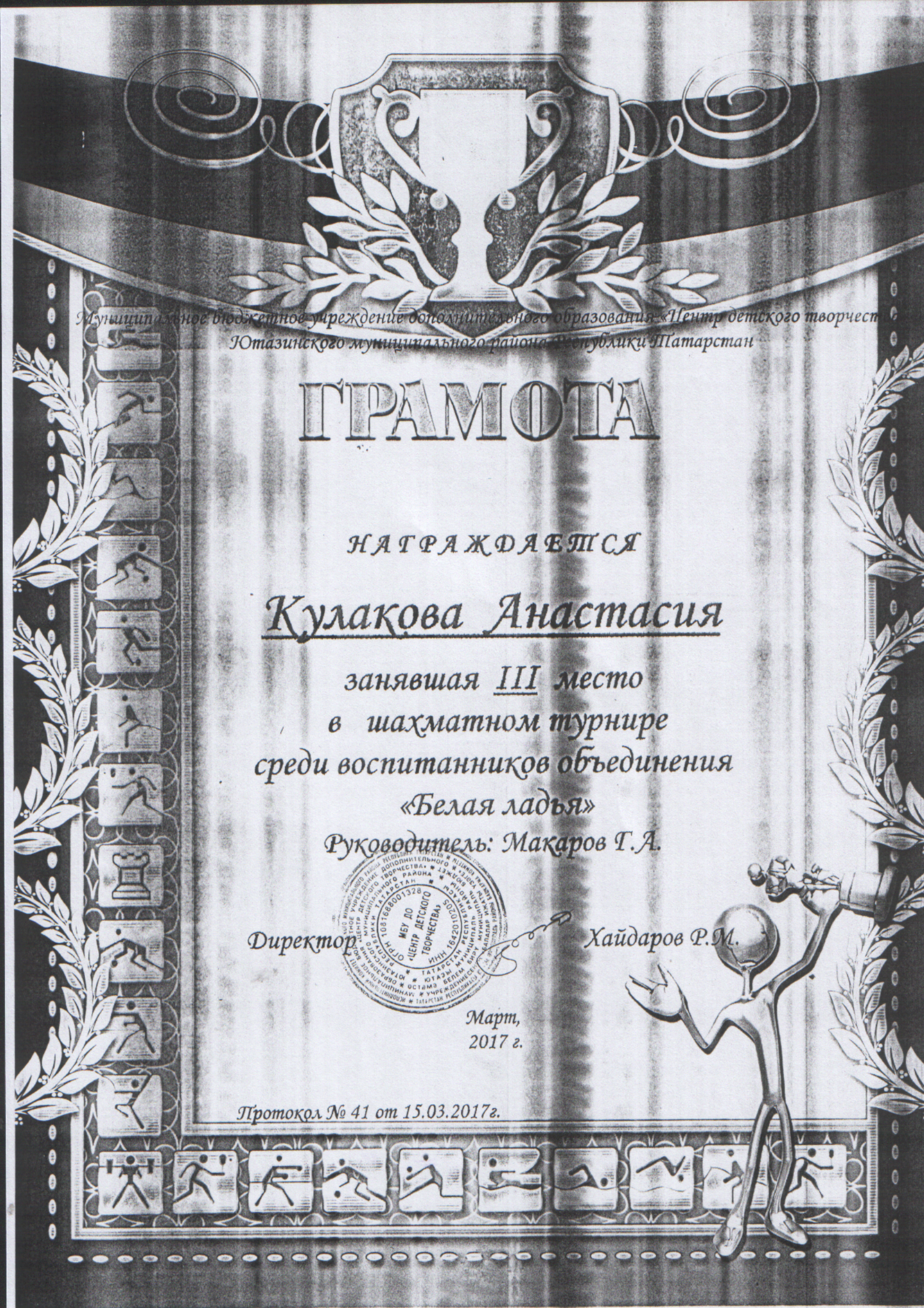 /Грамота в шахматном турнире среди воспитанников ЦДТ. Кулакова Анастасия.bmp